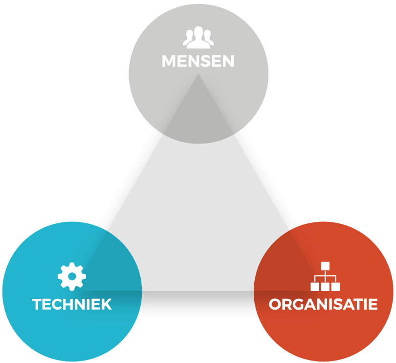 Echt veilig omgaan met informatie en het respecteren van de privacy wordt pas bereikt, door het toepassen van technische maatregelen (ICT) en organisatorische maatregelen (processen en beleid) én door de mensen hierbij te betrekken.